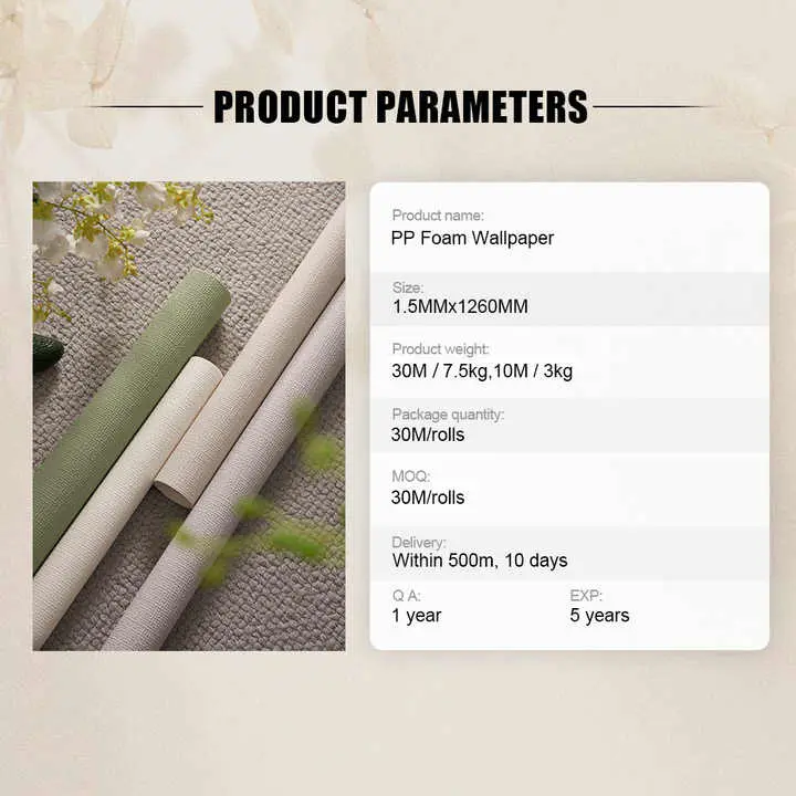· پائيدار ۽ پاڻي جي مزاحمتي مواد: اسان جو پي ايم فوم والپيپر اعلي معيار ۽ گرميء جي مبتلا ۽ تسلسل جي لاء، ڪم ڪرڻ جي لاء، ۽ مزاحمت جو مقصد، ٺاهيل آهي.